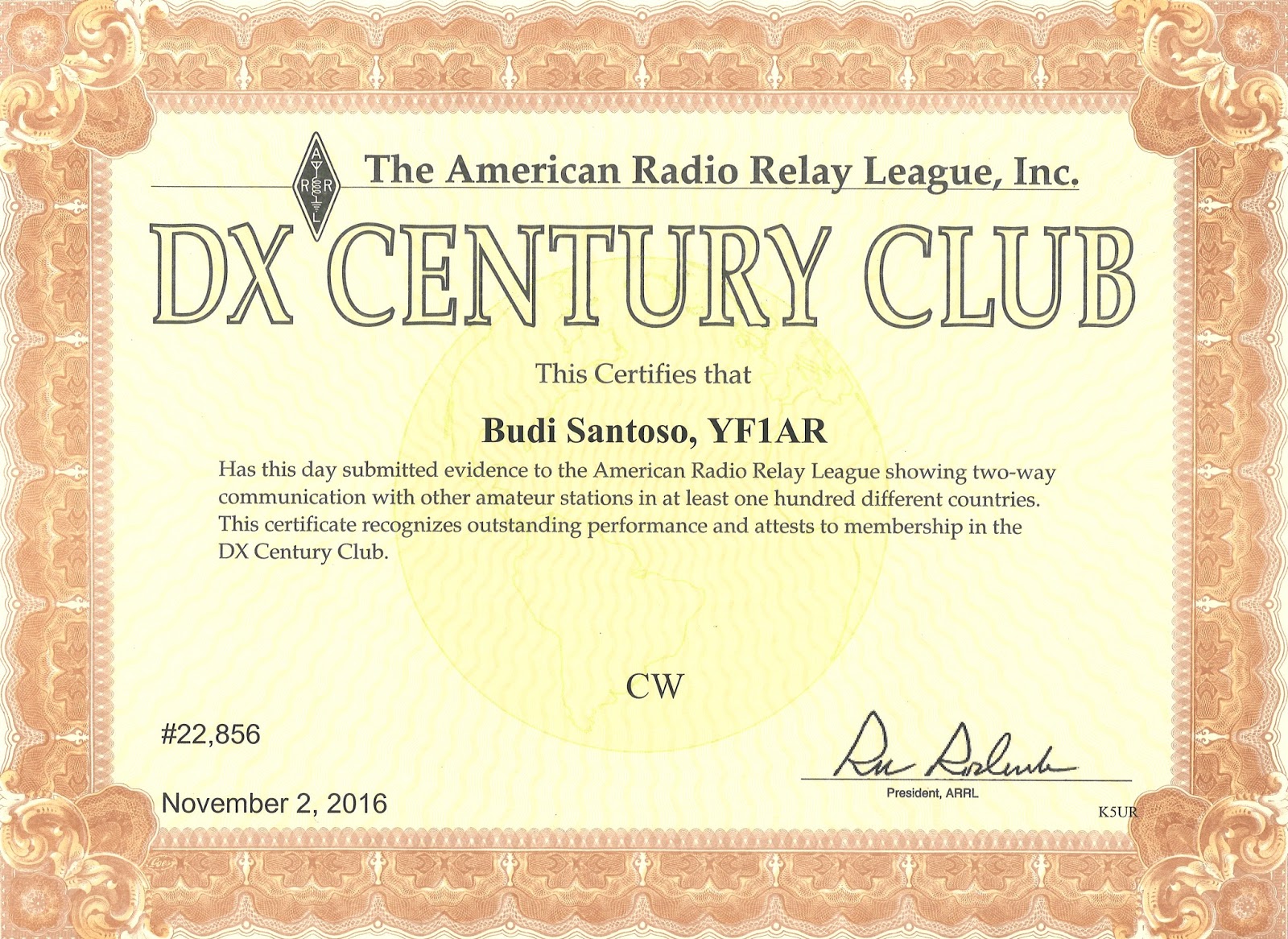 YB DXCC award Holder